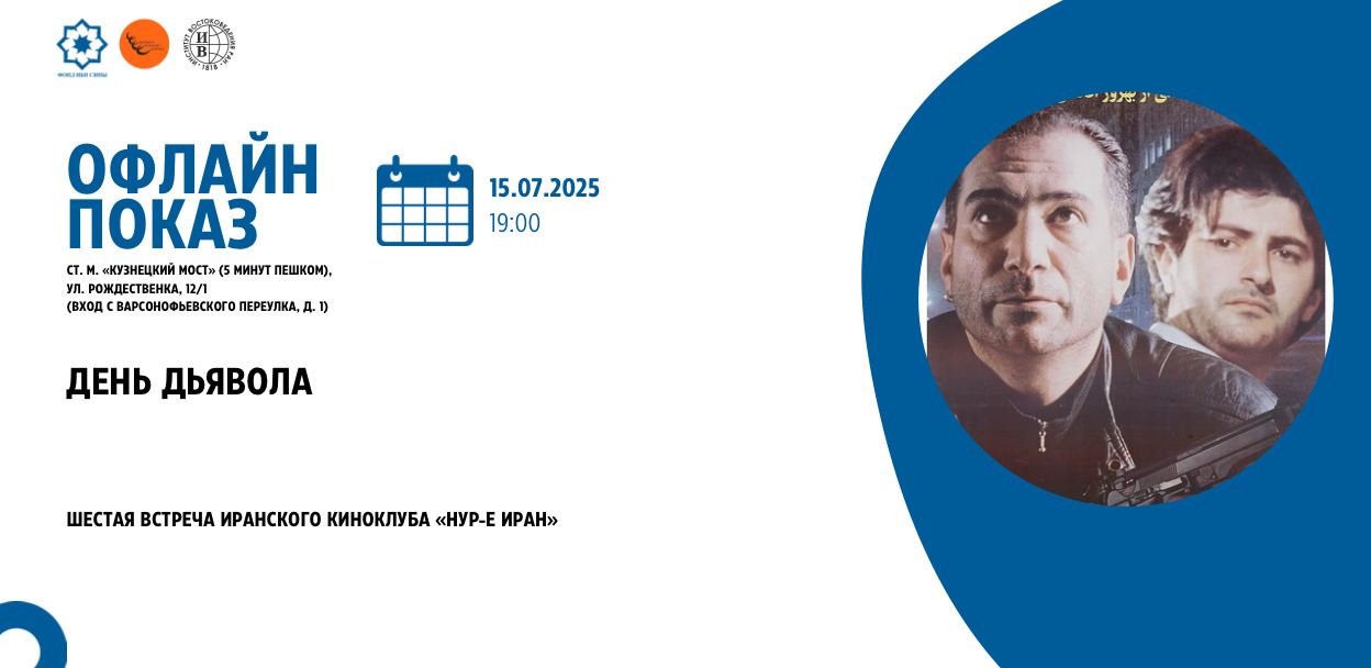 15 июля (во вторник) в 19:00 в Варсонофьевском переулке, дом 1 состоится шестая встреча нашего киноклуба, где мы представим вам захватывающий шпионский детектив «День дьявола» (1994) режиссёра Бехруза Афхами. Стоимость билета — 150 рублей.